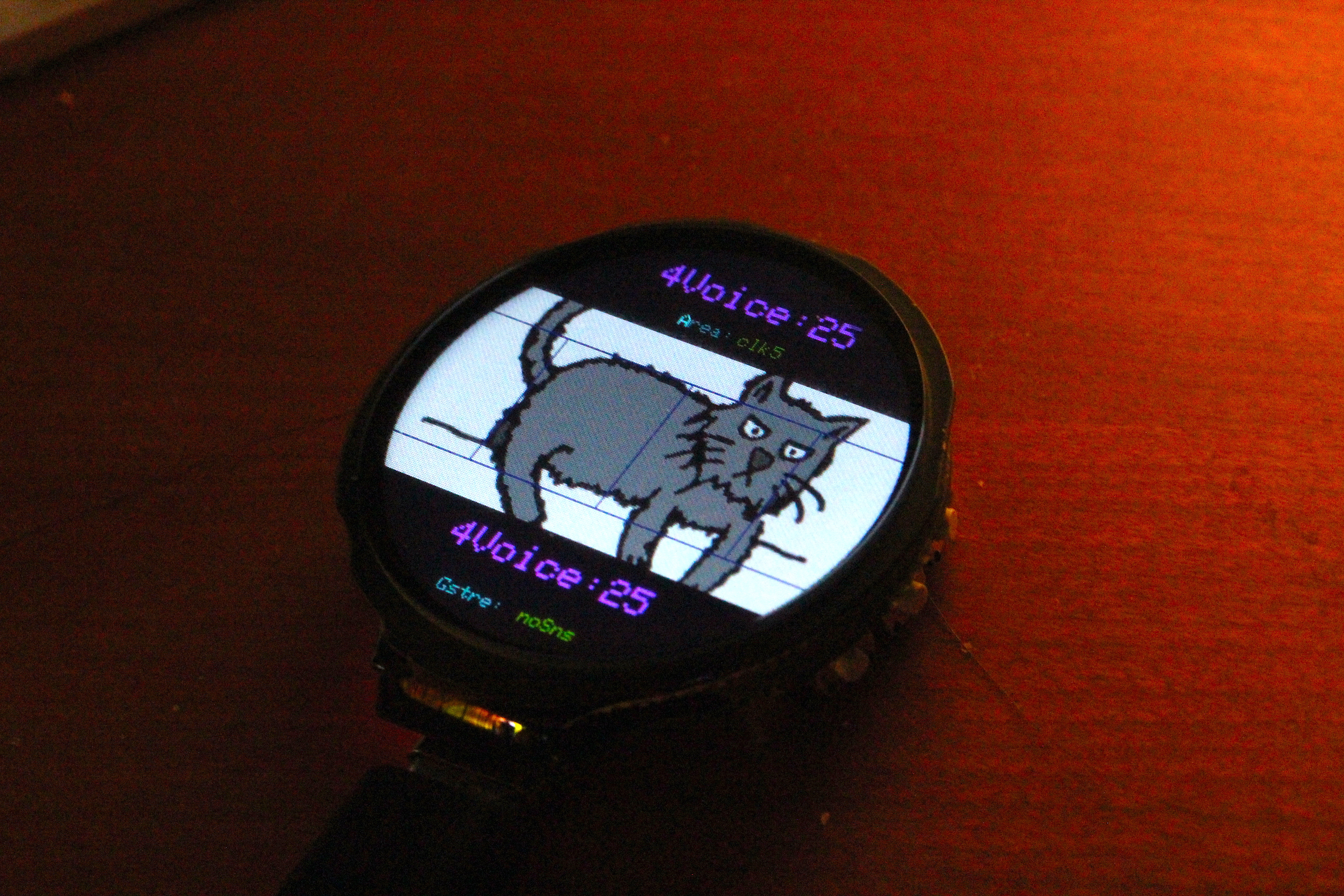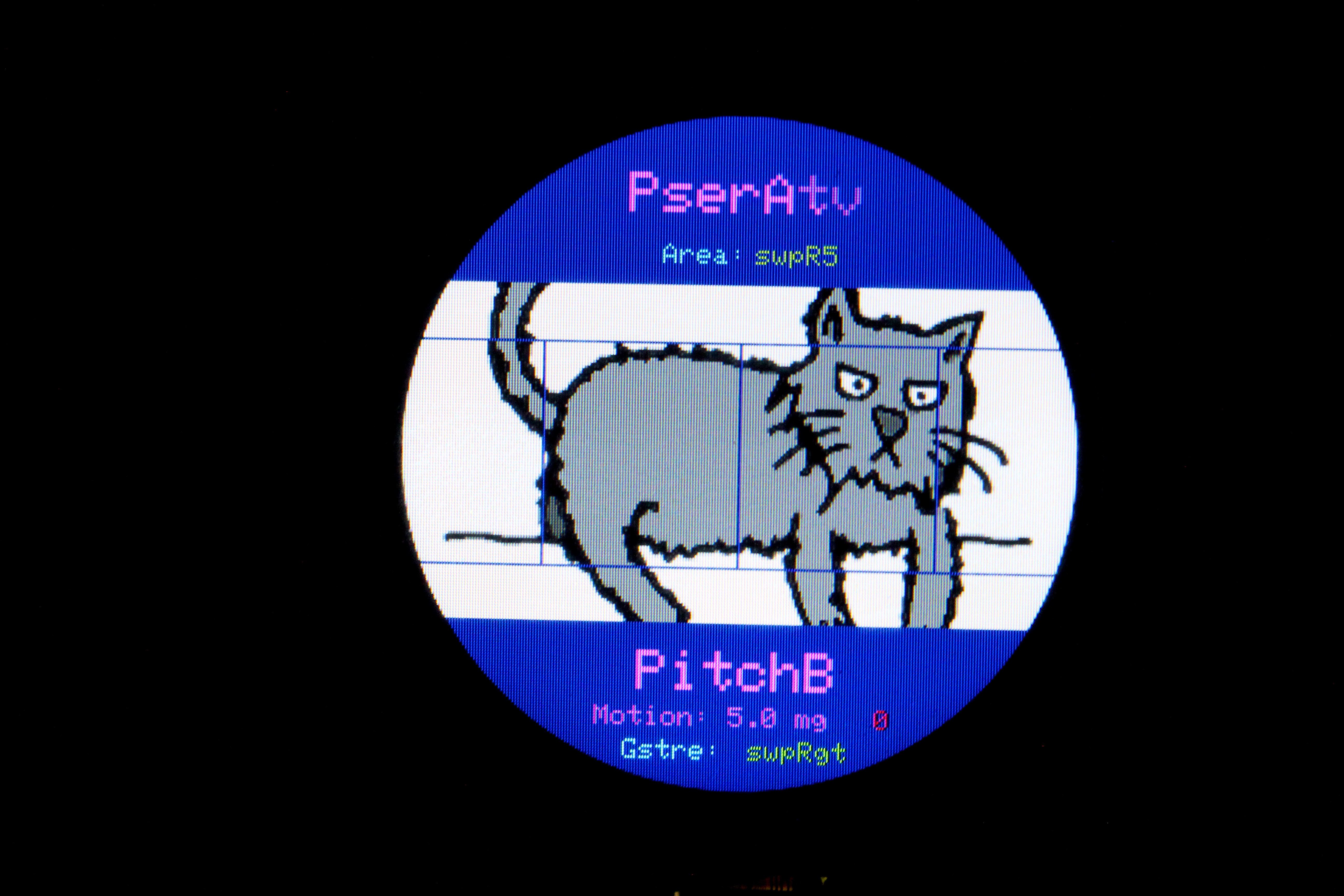 変更されたジェスチャーの判定項目を確認する表示機能を、ハードウエア側のジェスチャー判定ルーティンに組み込んでいる。 ジェスチャー判定が若干不安定なのは、LCDの周辺部に接触した他の指の影響で、LCDをフレームにマウントすることで対処が可能と思われる。
