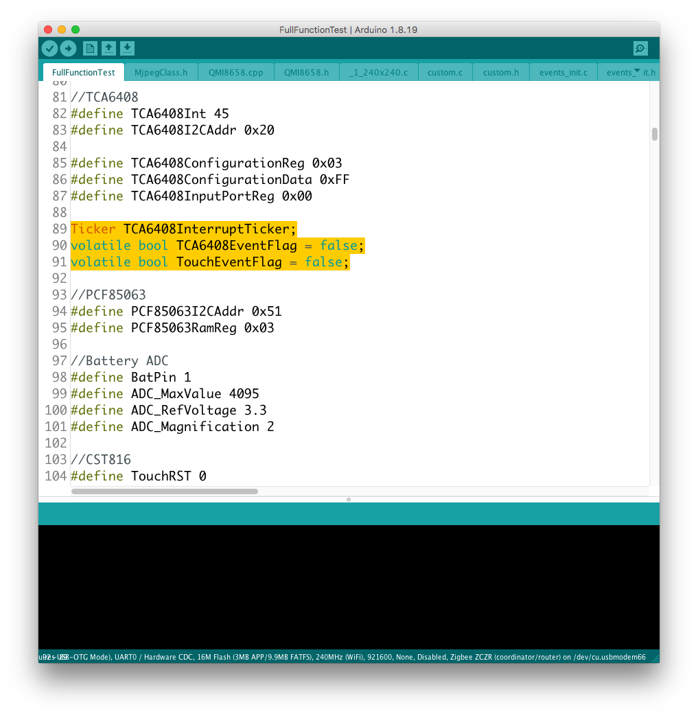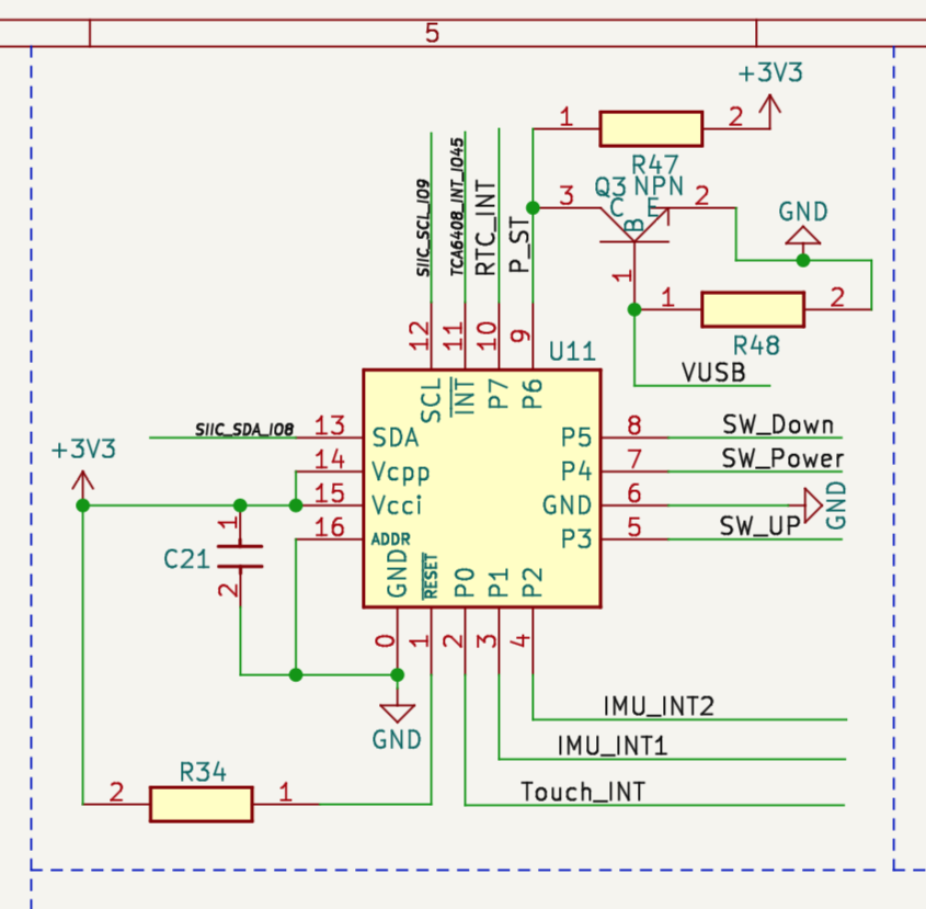 問題になったのは、タッチセンサー/CST816S と、i2c接続の外部増設スイッチ/TCA6408 の組み合わせで、