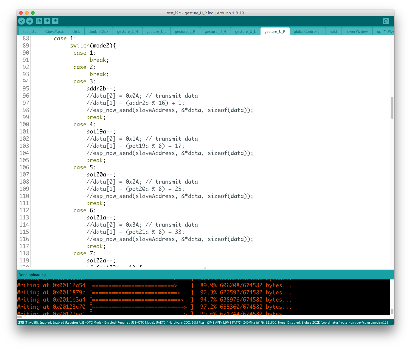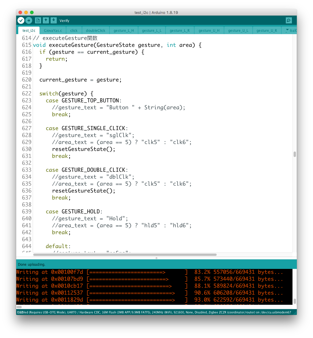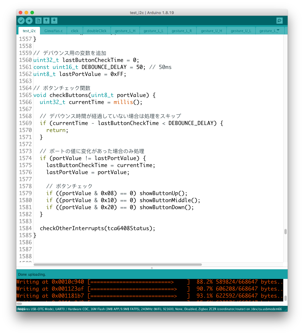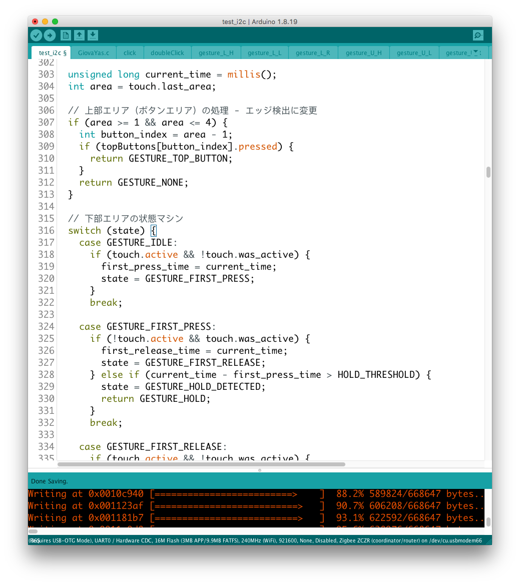 実際にデバイスを操作してみると、どうやら機能のコンフリクトが発生しているようで、ここでも継承性が維持されない問題が発覚した。 具体的にはgestureという変数が、異なるルーティンのジェスチャー判別機構で共有されているようだ。