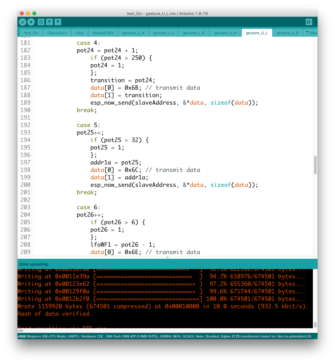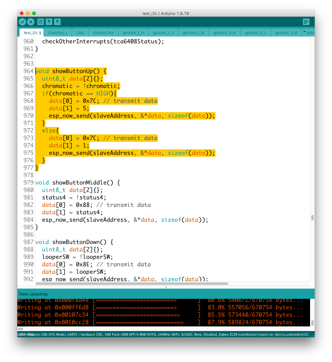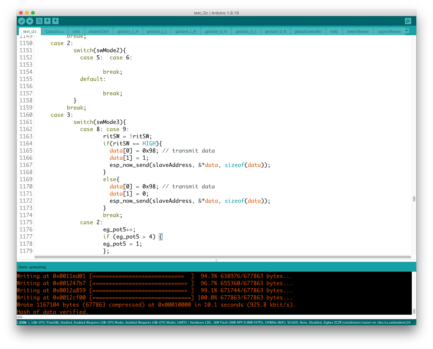 実際にデバイスを操作してみると、どうやら機能のコンフリクトが発生しているようで、ここでも継承性が維持されない問題が発覚した。 具体的にはgestureという変数が、異なるルーティンのジェスチャー判別機構で共有されているようだ。