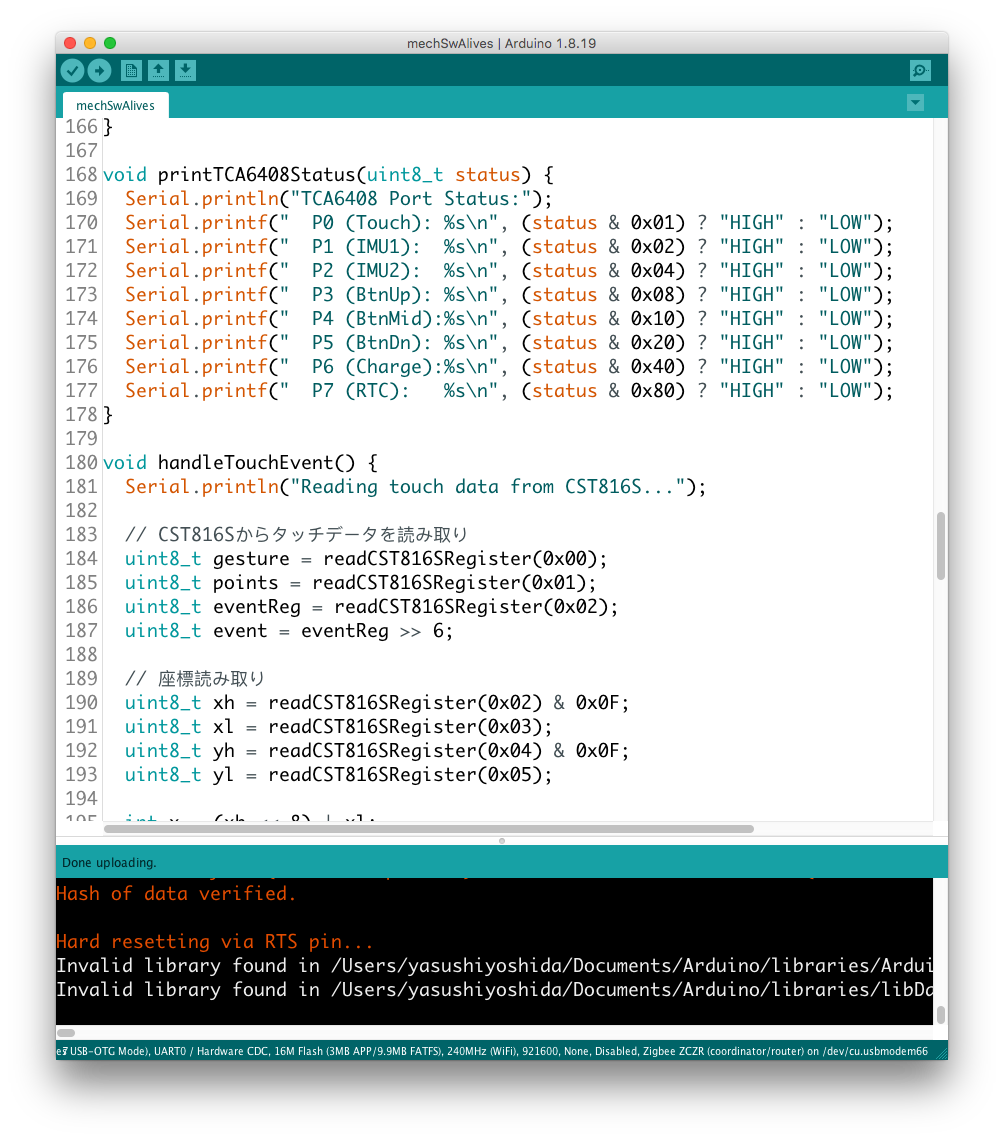 コードの構成は既に稼働実績のあるスケッチをCST816系に合わせて加工することにしたが、