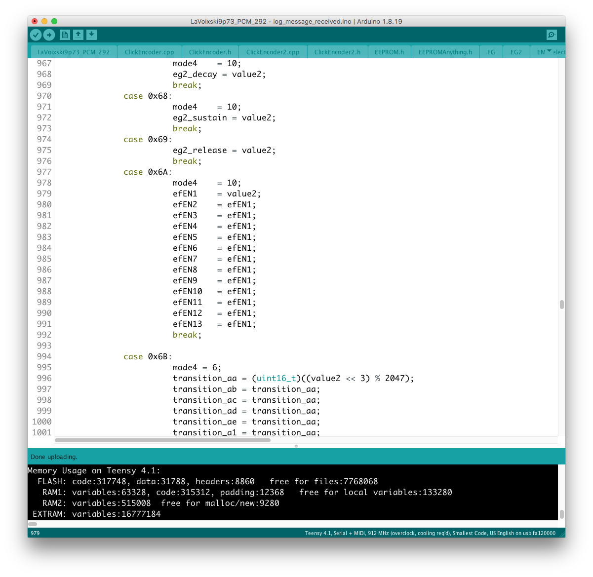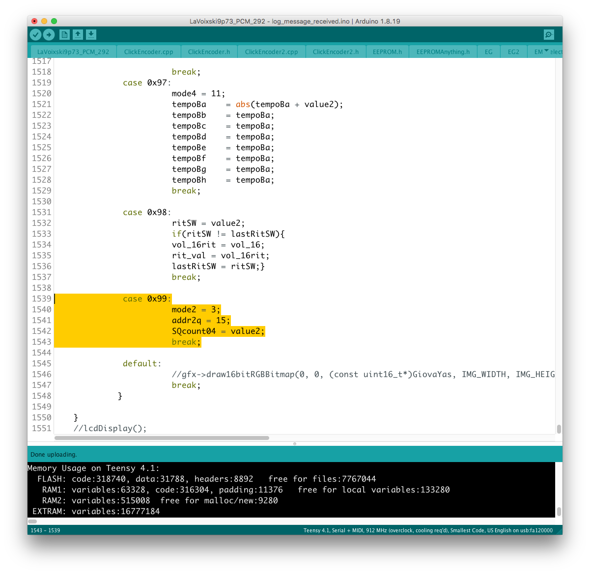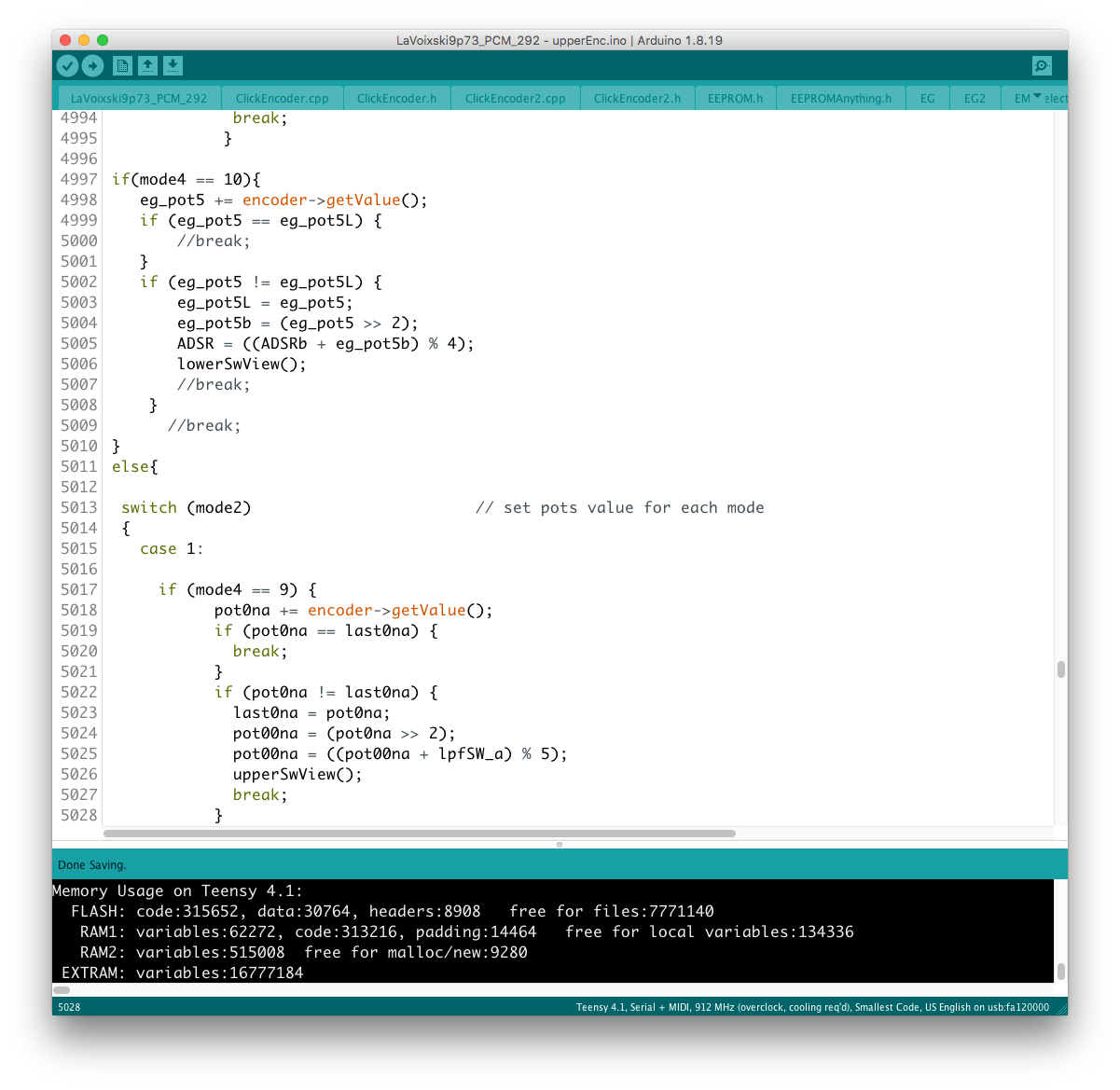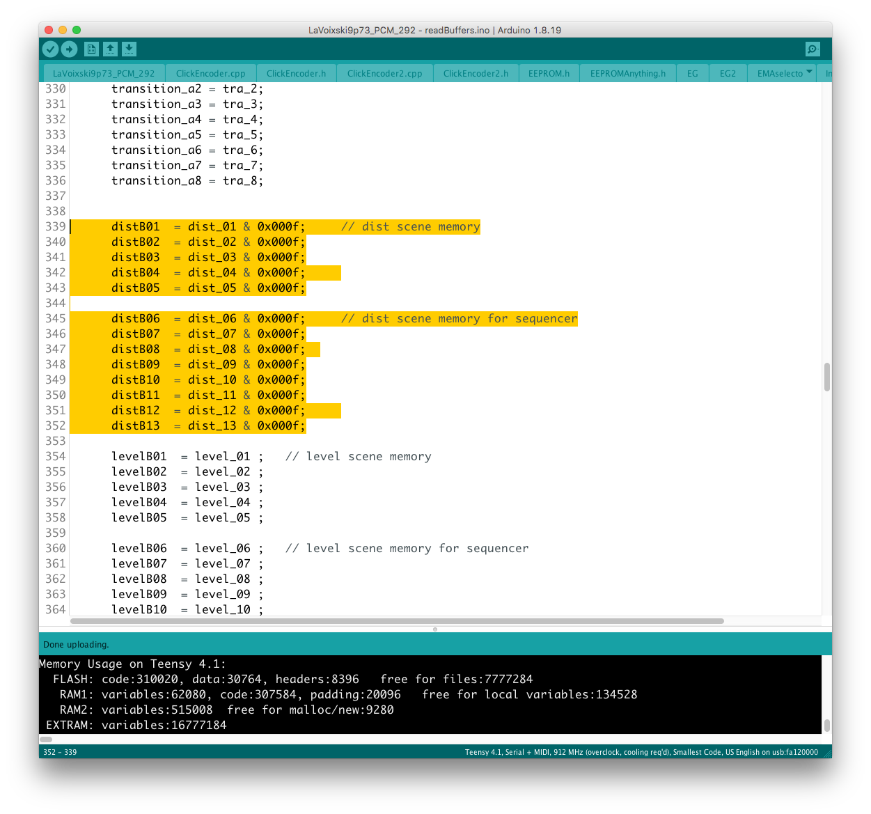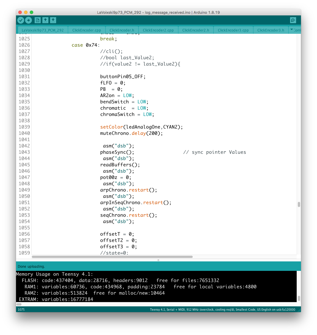 リモコン側のコードに対象となるパラメータを書き加える過程で、楽器本体側に VoiceMode 毎に分散したパラメータを一括でコントロールするグローバルコントローラを設置出来ると考えていたが、そもそもが VoiceMode 個別にシーンメモリを実装し、それを頻繁にコールしている手前、
