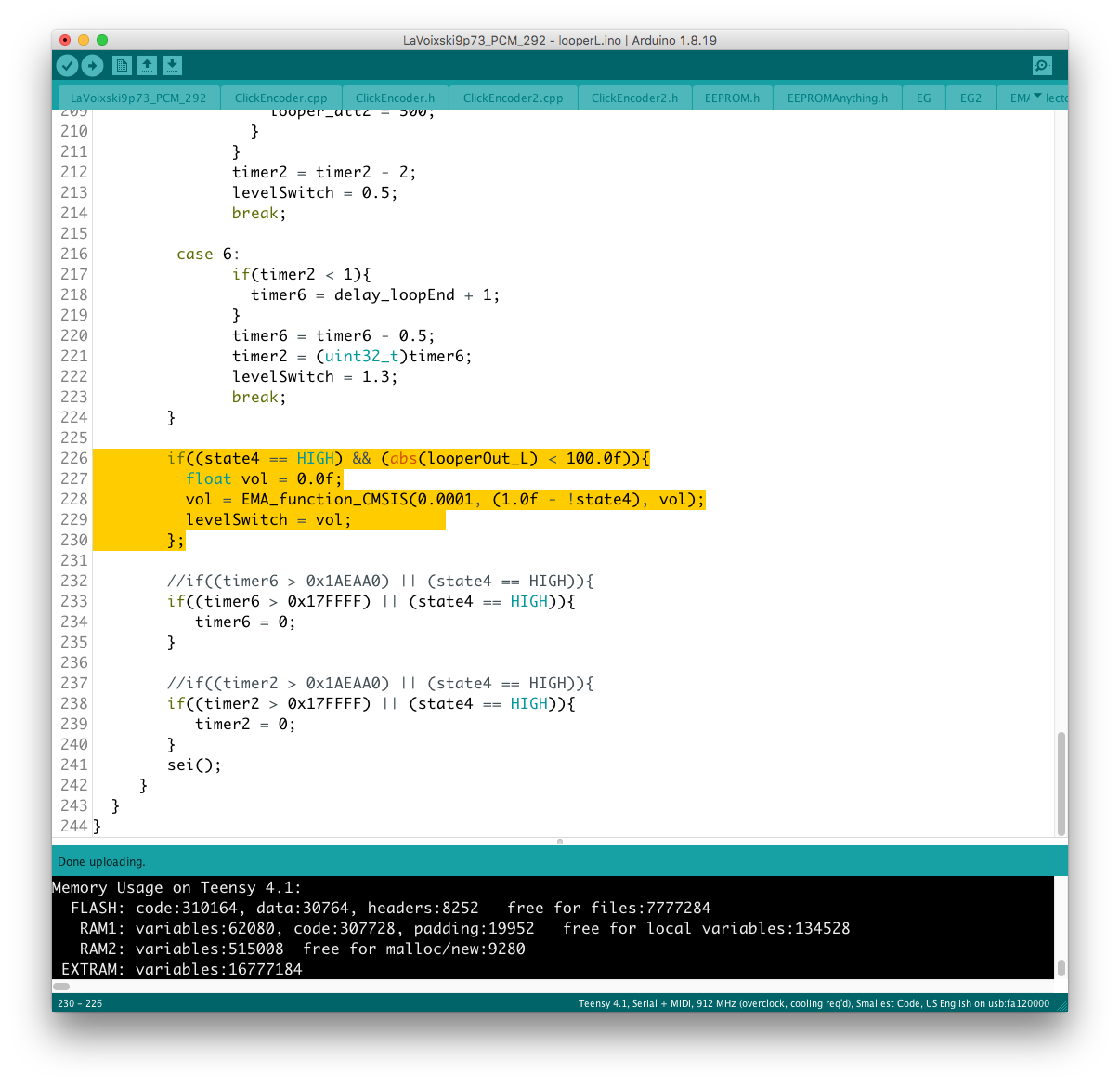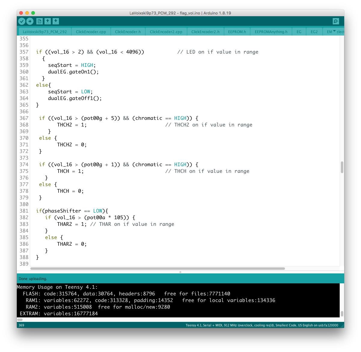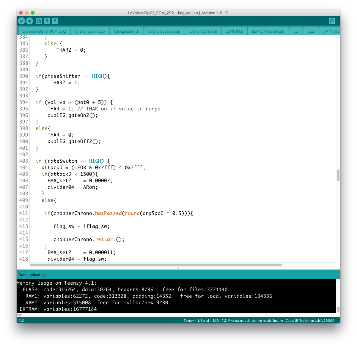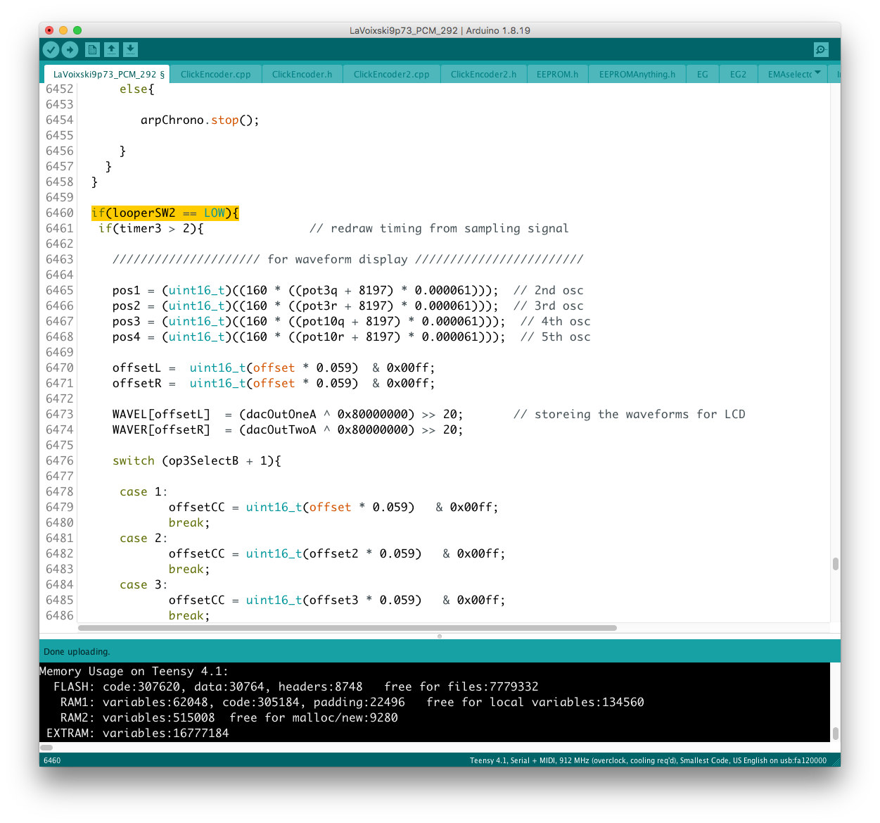 リモコン側のコードに対象となるパラメータを書き加える過程で、楽器本体側に VoiceMode 毎に分散したパラメータを一括でコントロールするグローバルコントローラを設置出来ると考えていたが、そもそもが VoiceMode 個別にシーンメモリを実装し、それを頻繁にコールしている手前、