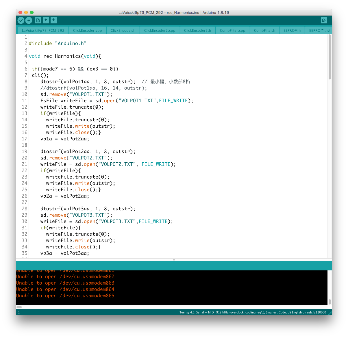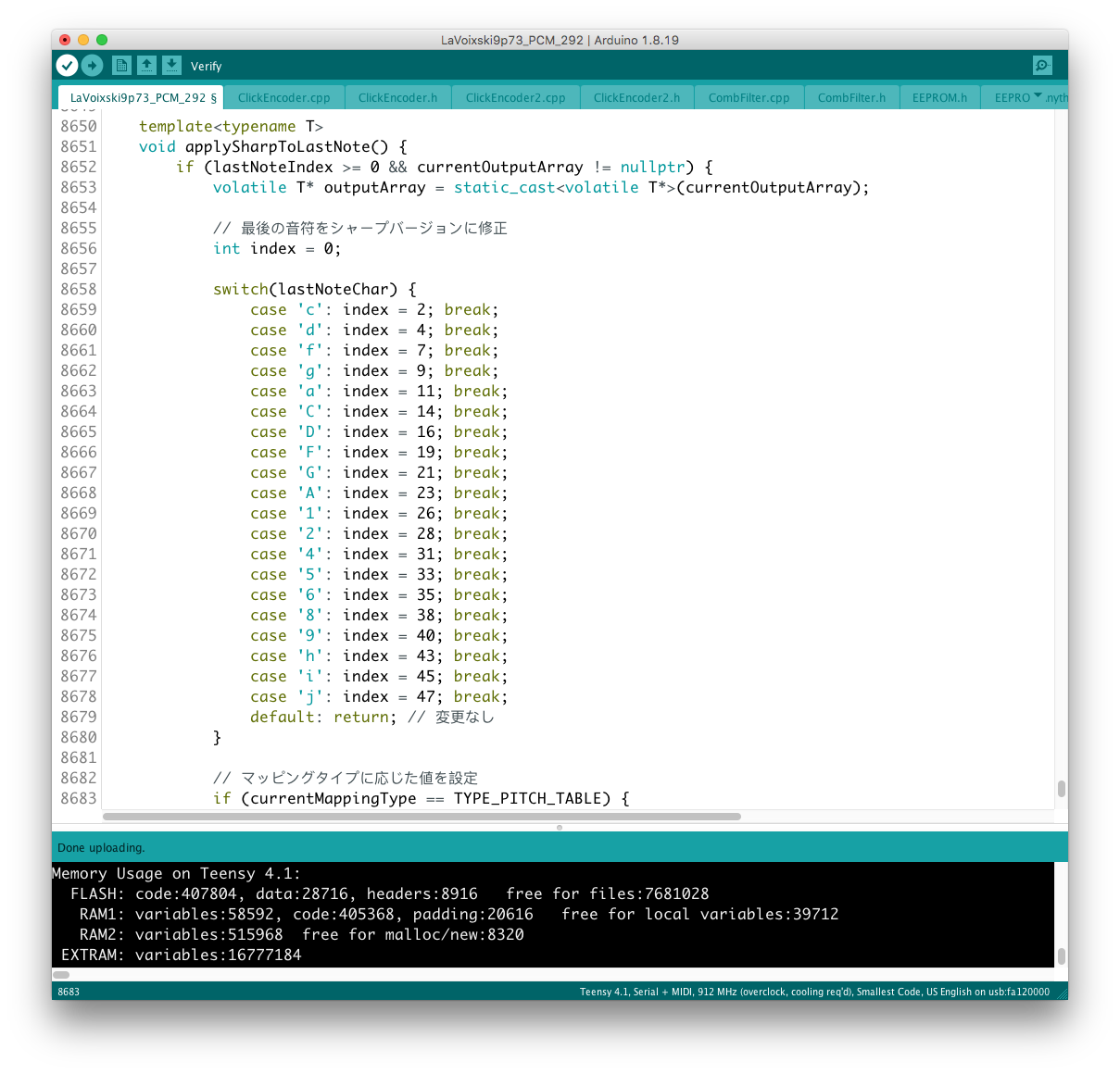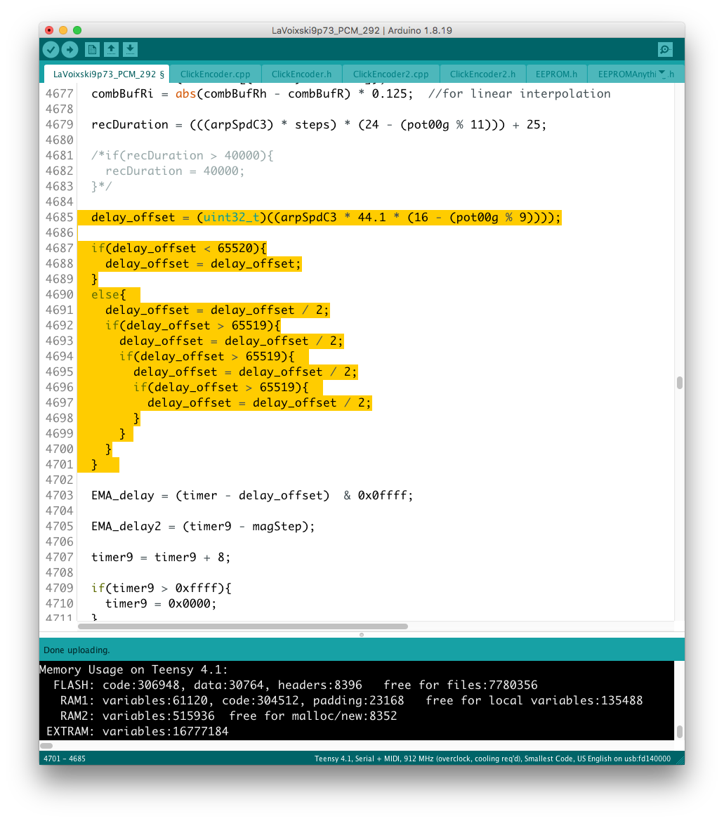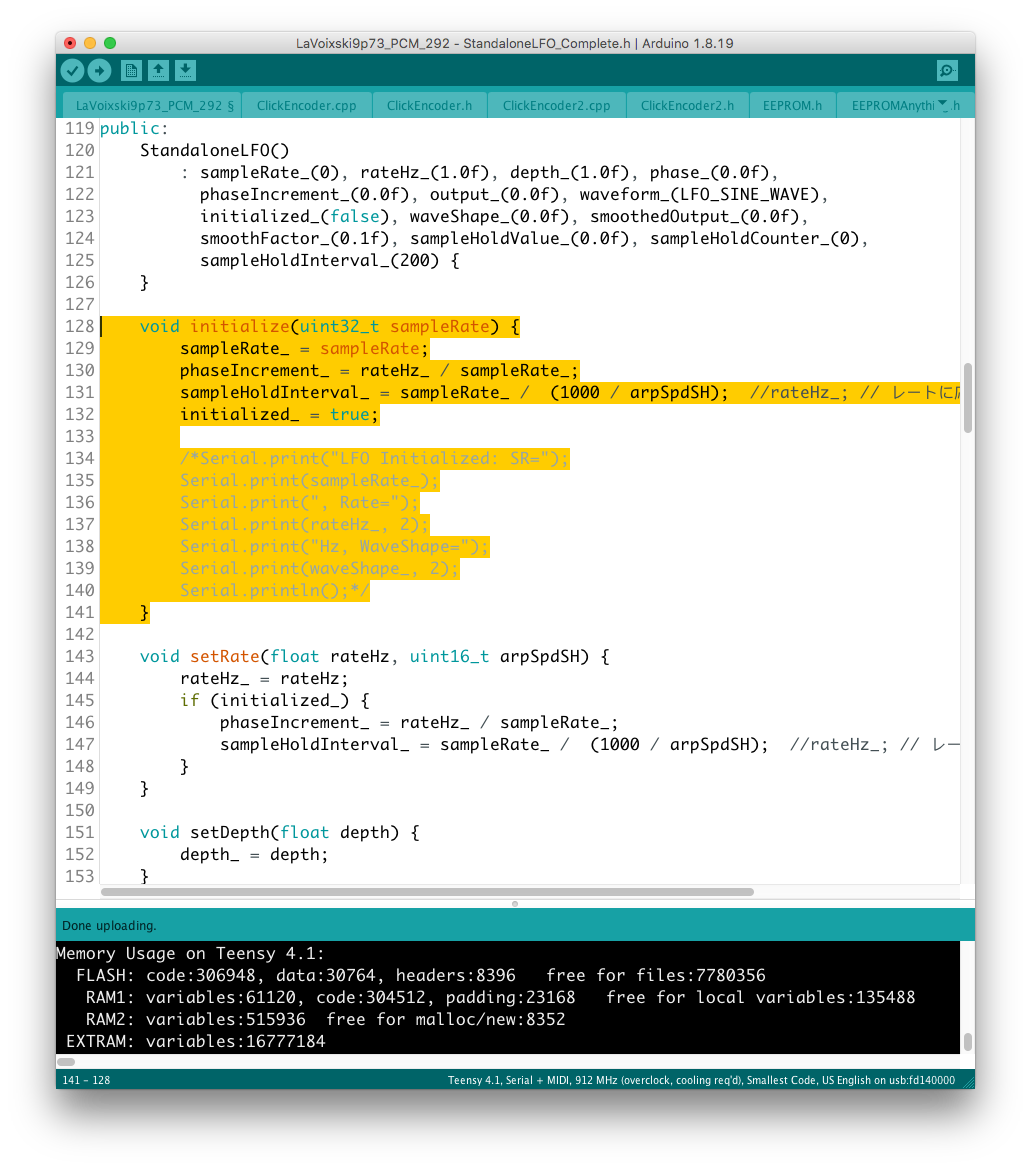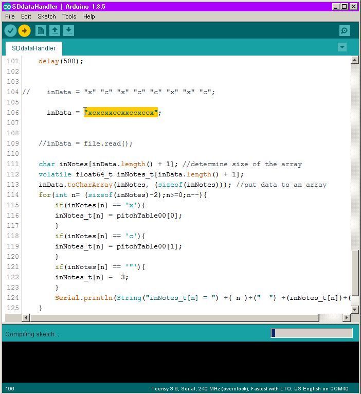 あと、コード#35 の不調の原因として voiceMap( ) 上に add_val+d と記述された謎のタイプミスを発見、こちらもすぐに解決することができた。 不運にも、+ された "d" が変数として認識されてしまったが故の珍事だった。