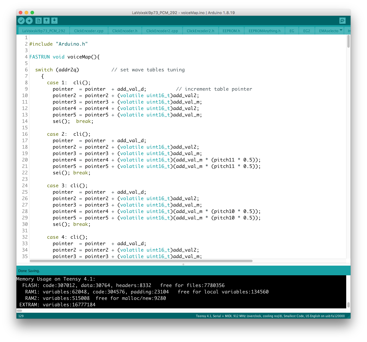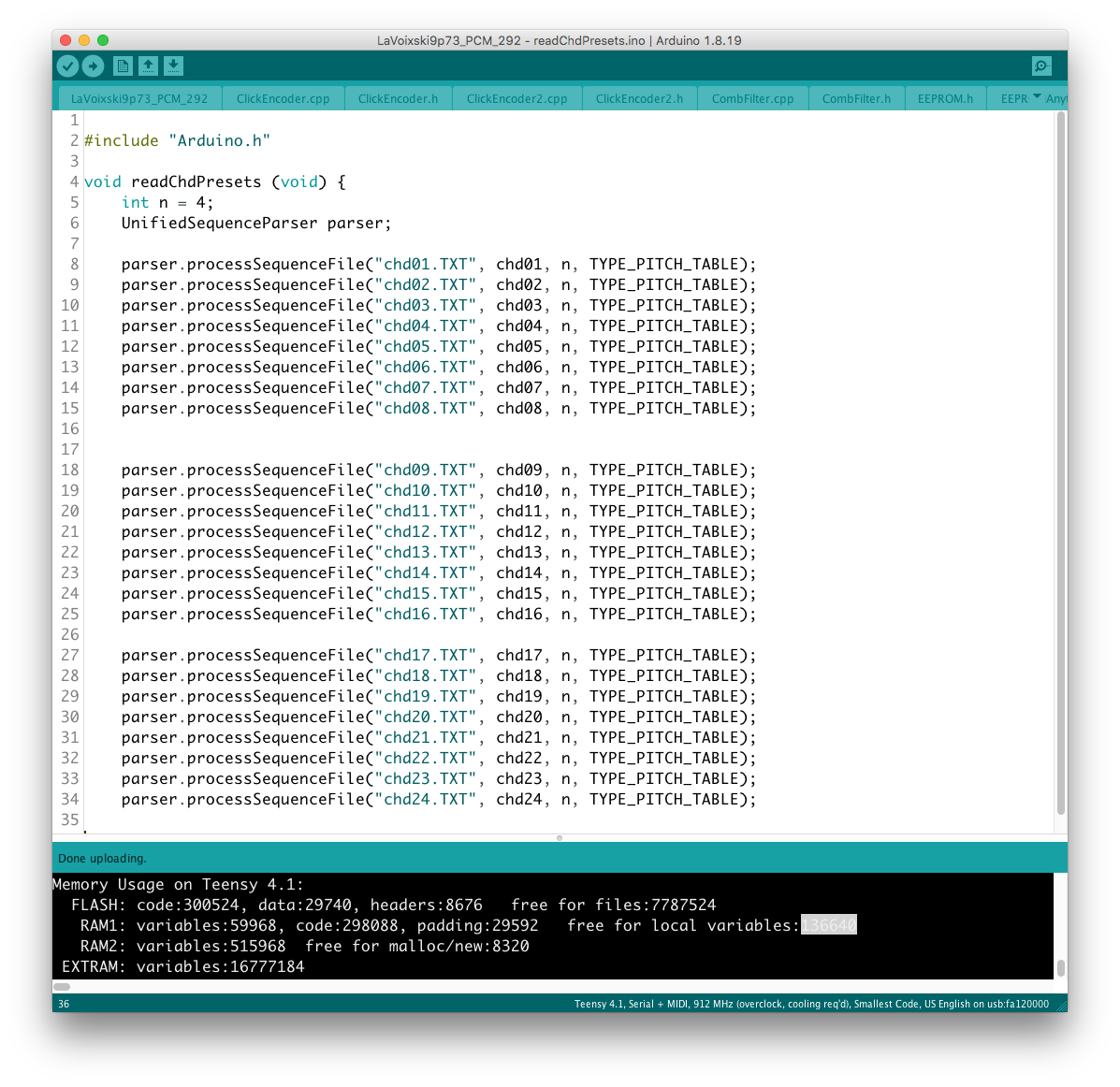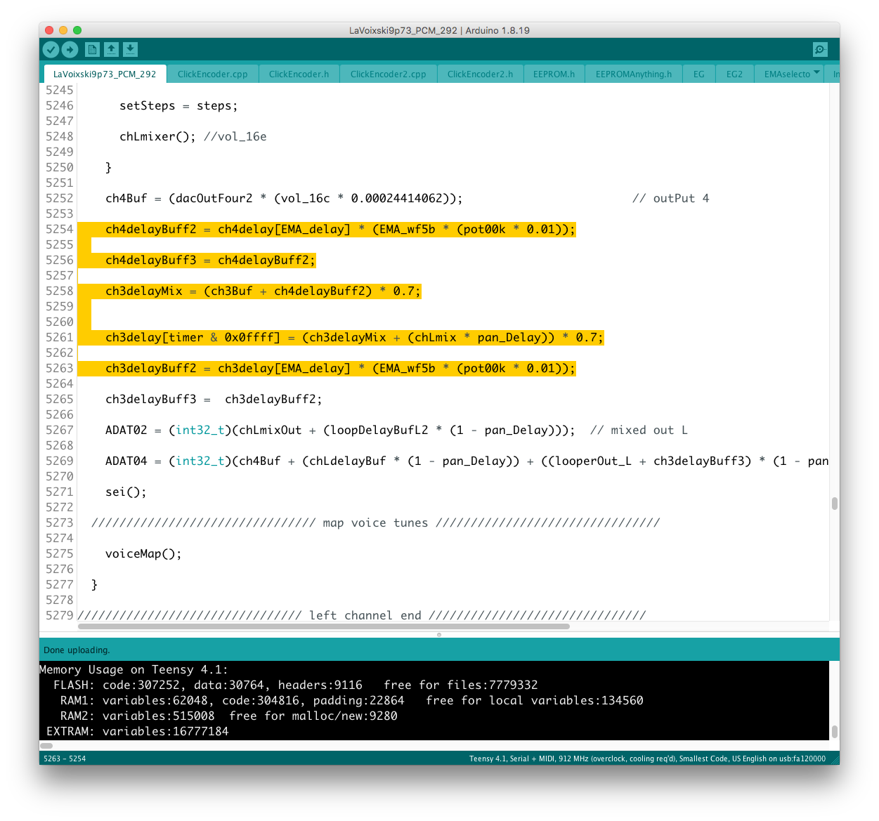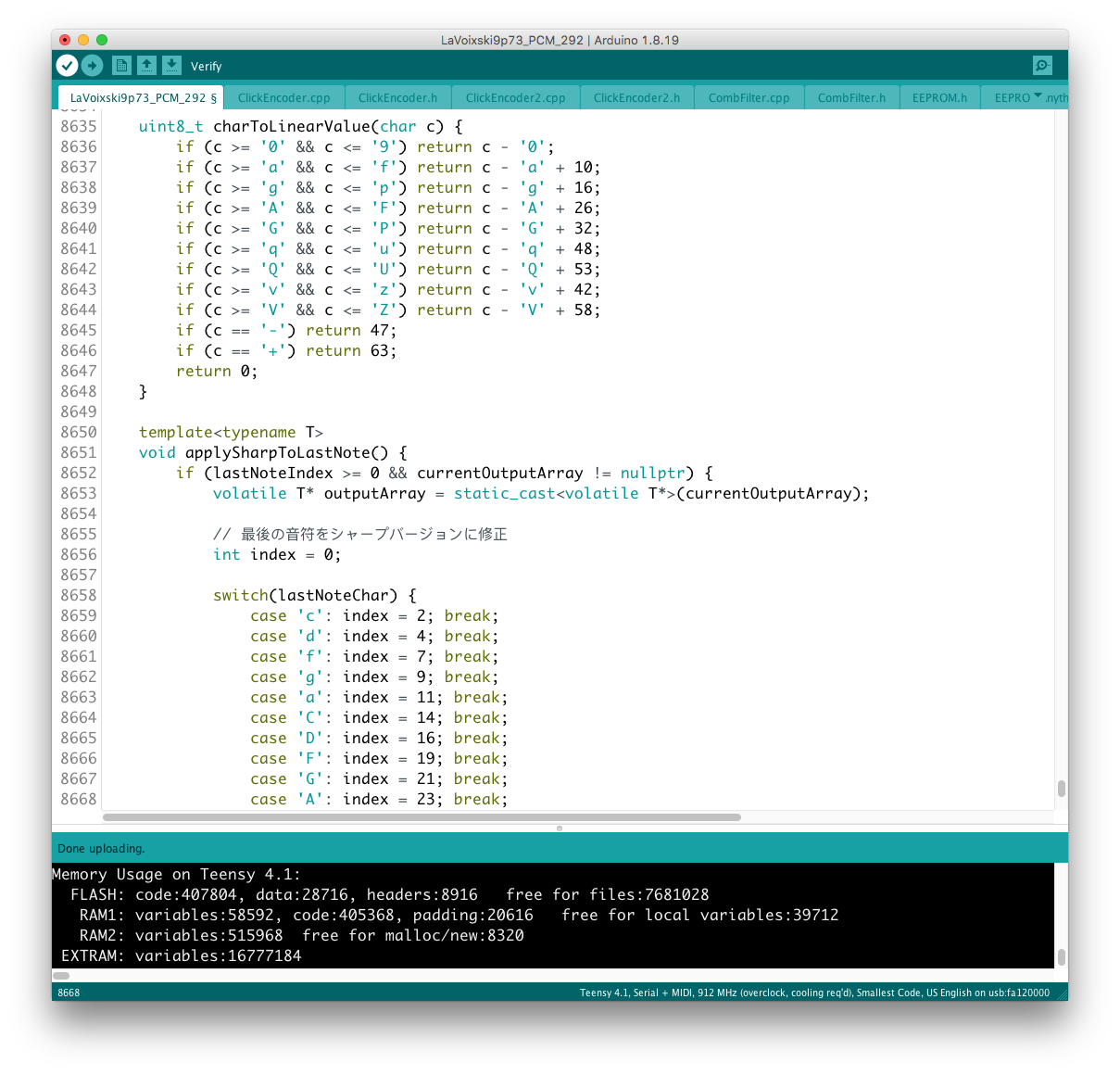 あと、コード#35 の不調の原因として voiceMap( ) 上に add_val+d と記述された謎のタイプミスを発見、こちらもすぐに解決することができた。 不運にも、+ された "d" が変数として認識されてしまったが故の珍事だった。