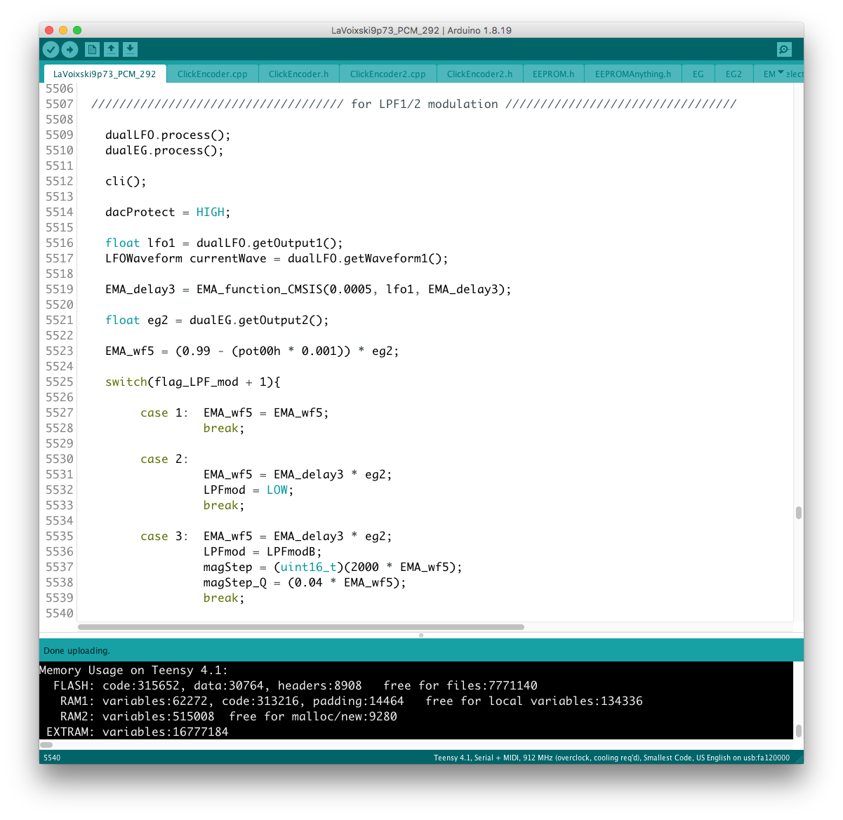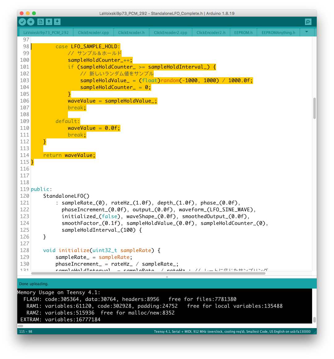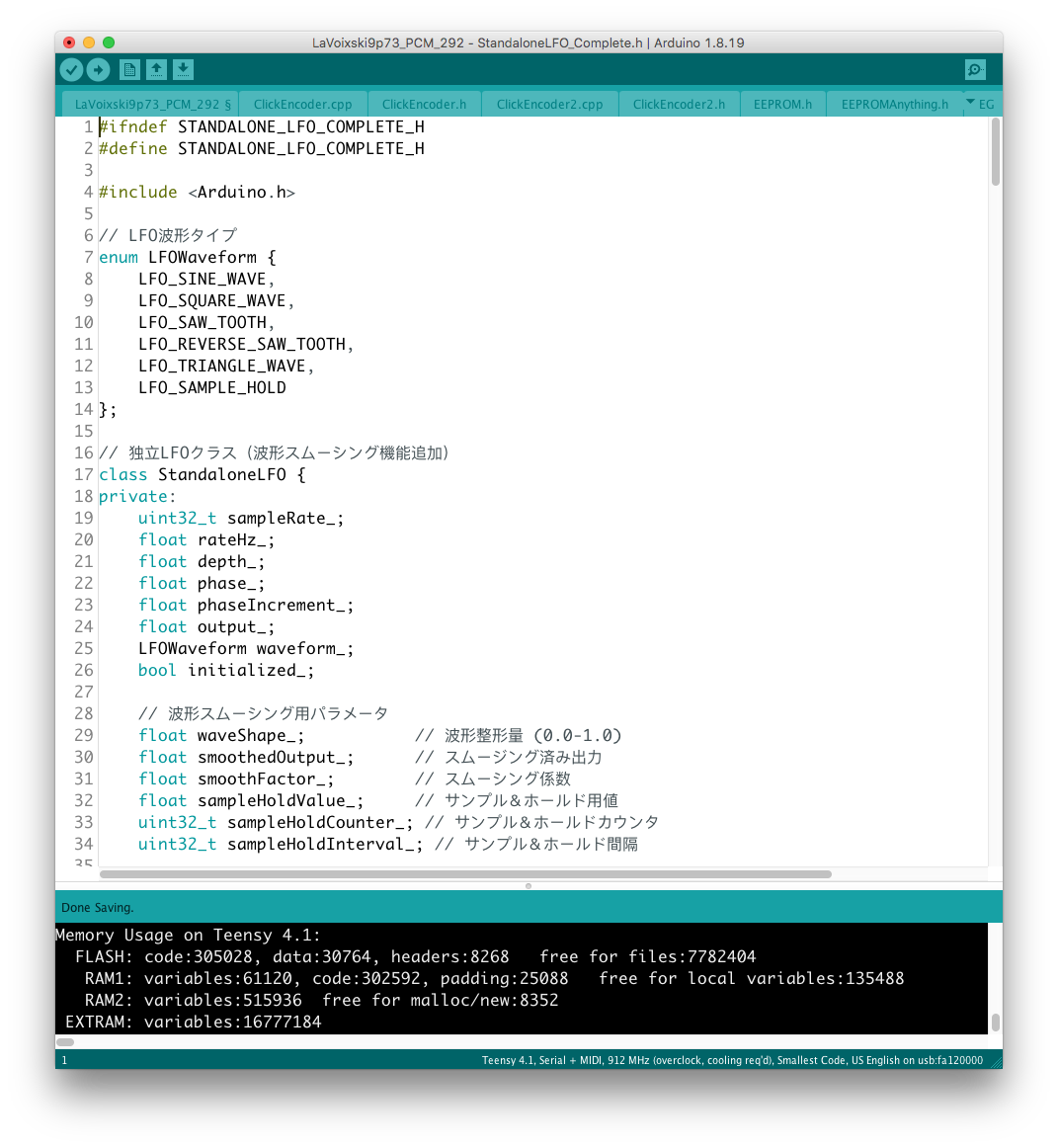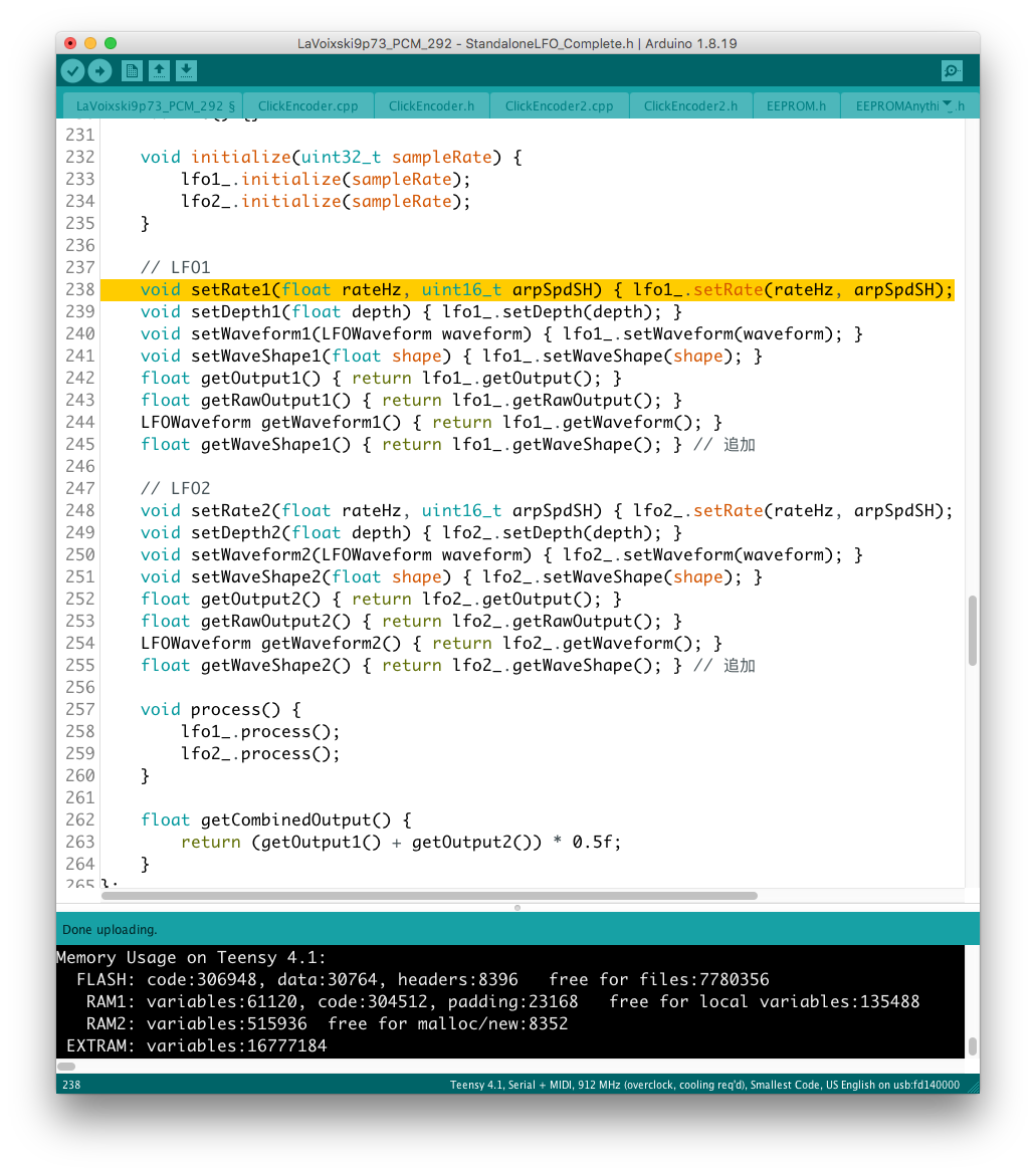 この辺りの処理の流れは LFO と同じなので、新たなモジュレータとして組み込むのに最適な場所を考慮するだけでよかった。