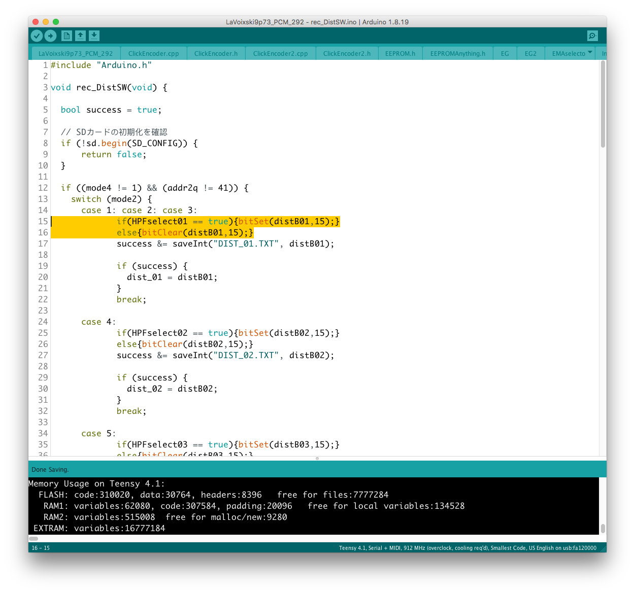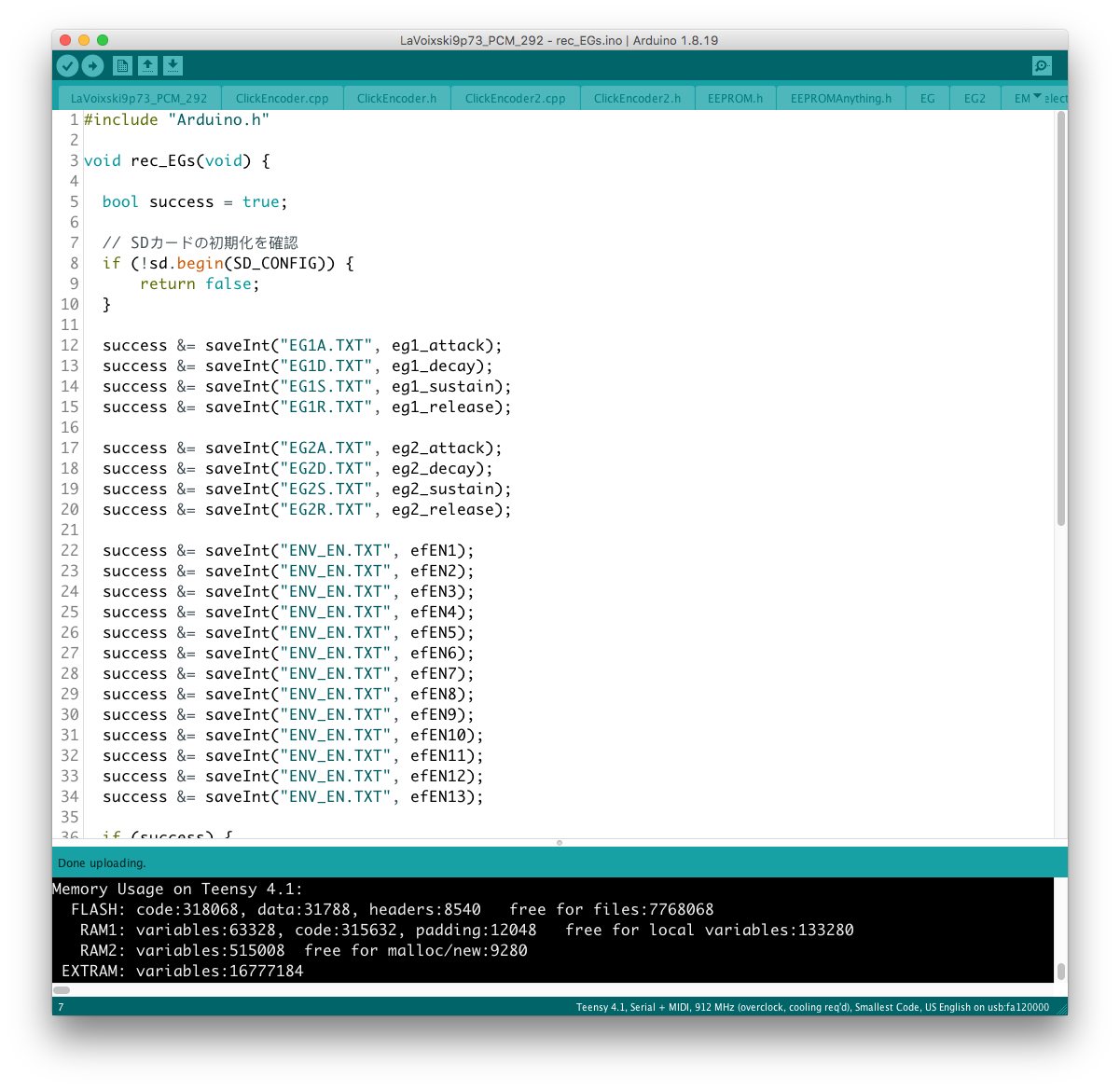 EG と ENV の接続状態を microSD に記憶する機能を実装した。