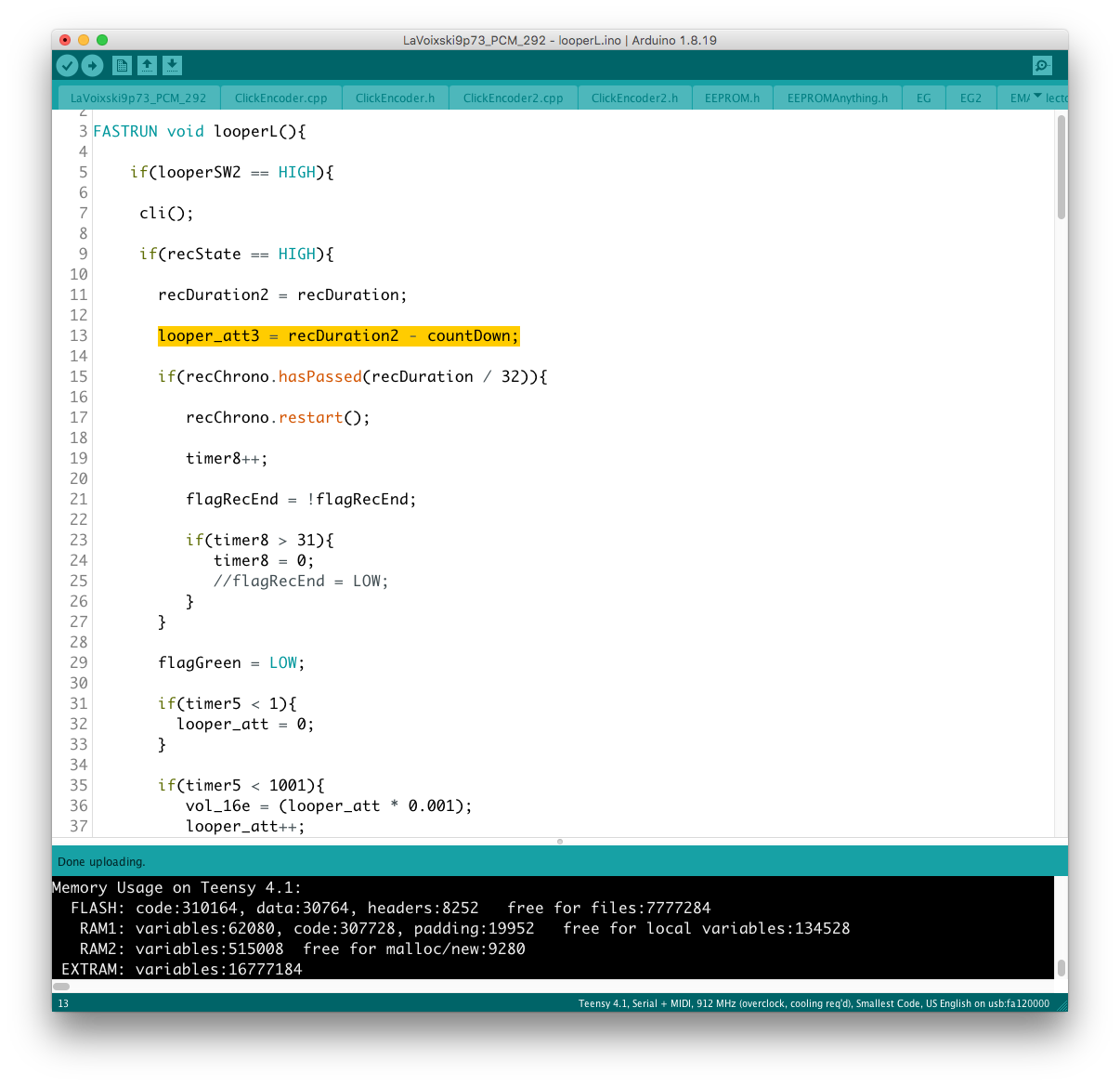 同様に、ロータリーエンコーダの操作時にSequencerのTempo設定レジスタ周りに認められたデータの極性反転に追従できない不具合を解消した。