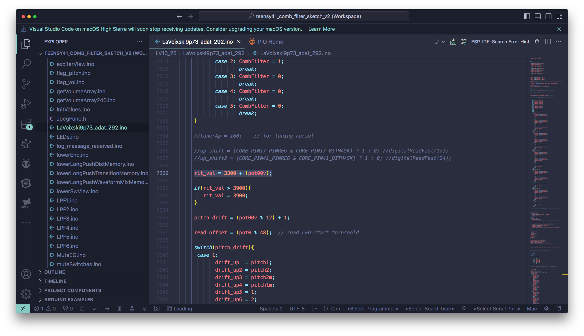 ついでに、紛らわしい命名を行っていたレジスタ群の名称を変更しつつ、遊んでいた Env1 の出力を VCF 専用に割振った他、CombFilter 系のモジュレータに直結していた Env2 にフィルターを挿入した。
