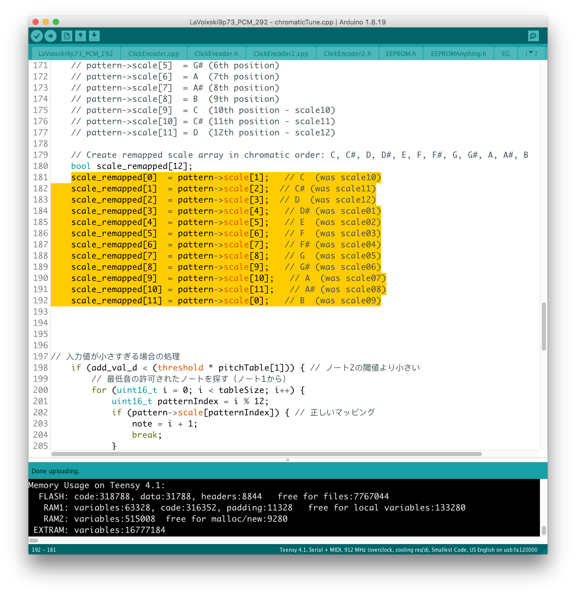 外部 midi 機器との間で整合性を取ったつもりだった ChromaticMode と、基音設定チューナーの間に 1nn のズレが生じている不具合が発覚した。